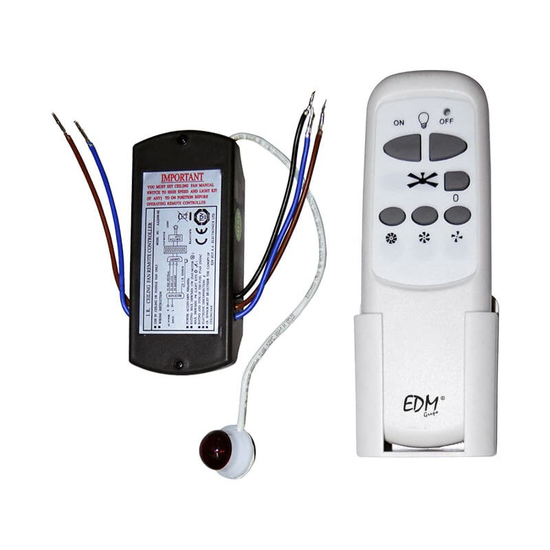 Kit universale di controllo remoto per ventilatori a soffitto (compreso ricevitore a ventola + telecomando con funzione on/off per selettori leggeri o a 3 velocità) il telecomand funziona con 2 batterie aa non incluse + supporto a parete per il telecomande edm. . . . Peso: 0,2600kg Indice di protezione IP: IP20 Certificazione: QUESTO Garanzia: 2 anni Ricaricabile: NO Disponibilità: Spedizione entro 8 giorni Etichetta: SÌ Digitare Posizione: MEDIA