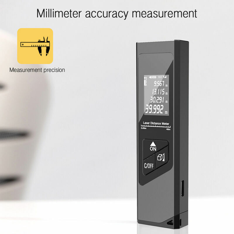 Il telemetro laser con telemetro laser a unità multiple consente di cambiare l'unità tra metri, pollici e piedi, consentendo di misurare rapidamente e facilmente per migliorare l'efficienza. addizione e sottrazione di misurazioni, superpotenza e risparmio energetico, Strumento di misurazione multifunzionale Il telemetro laser digitale può essere ampiamente utilizzato nella decorazione di interni, nella decorazione di interni, nell'architettura (camere, appartamenti, edifici, immobili, fabbriche, magazzini ), ecc. lista di imballaggio Telemetro laser portatile*1 Caratteristiche: Il telemetro laser L-40 utilizza una lega di alluminio materiale per lucidare il corpo, aspetto liscio, sensazione opaca, aspetto esclusivo, consente di posarlo, un raro telemetro laser Campo di applicazione: decorazione, acqua ed elettricità, posa di piastrelle, acquisto e vendita di case
