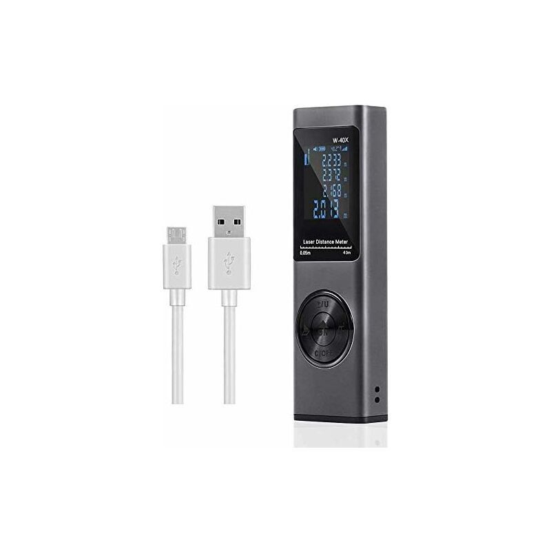 Telemetro ad alta precisione - La precisione del nastro laser è di ± 2 mm e il campo di misurazione è compreso tra 0,04 ma 40 m. La livella a bolla elettronica migliora la precisione. Gli ultimi 20 record possono essere salvati e richiamati con i dati di misurazione. Funzione silenziosa. Calibrazione automatica . 【Modalità di misurazione multiple】 Il misuratore laser ha una linea di base avanti / indietro che consente di misurare rapidamente distanza, area e volume, misurazioni pitagoriche indirette, misurazioni di addizione e sottrazione e continuare la misurazione. Unità di regolazione gratuita tra M / in / ft per le vostre esigenze. 【Design durevole e portatile】 Il raffinato alloggiamento in metallo è più resistente agli urti e offre una sensazione tattile più confortevole. IP54 impermeabile e antipolvere protegge il più possibile la distanza del laser. La cinghia da polso consente di mantenere il dispositivo di misurazione stabile e facile da trasportare. 【Ricaricabile tramite USB