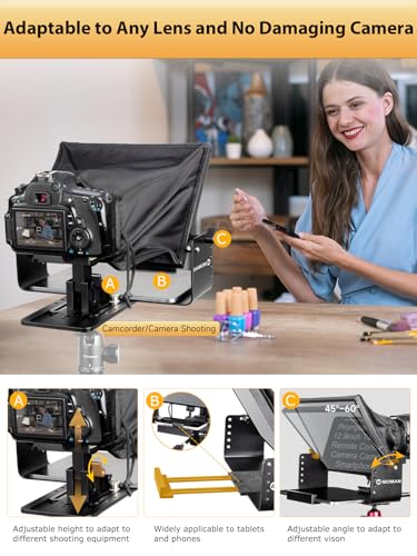【Display HD, Rifiuto NG】MOMAN Teleprompter MT12 rinnova il vetro riflettente con un grande divisore di fascio temperato da 12 pollici, fornendo un raggio di lettura fino a 4,5 metri. Con il suo cappuccio regolabile e il vetro tecnologico all'avanguardia, il testo sul tuo tablet/telefono si riflette chiaramente sul display ad alta definizione del teleprompter. Ciò significa anche che MT12 può ridurre la frequenza NG e migliorare efficacemente l'efficienza del lavoro.