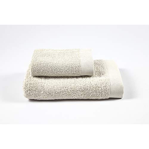 LE TELERIE Set 1+1 Asciugamano Viso e Ospite 100% Puro Cotone Biologico EcoCotton (Crema)