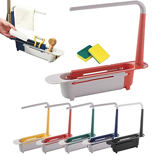 Telescopic 2-In-1 Sink Storage Rack Holder, Telescoping Sink Storage Rack,Updated Adjustable Sink Storage Rack, Sponge Holder Over Sink Expandable Storage Drain Basket Rack Sink Organizer (Pink)