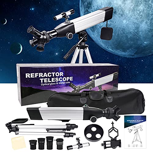 Telescopio Astronomico, 500/60MM, 20X-167X, Telescopio a Rifrattore con 3 Oculari Rotanti, Treppiede, Adattatore Telefonico per Bambini e Adulti