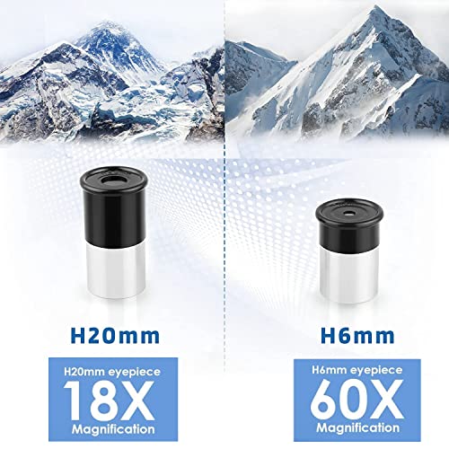 Vero Telescopio Astronomico: il telescopio ottico è dotato di due oculari di diversi ingrandimenti. L'oculare H6mm è 60X e l'oculare H20mm è 18X, in grado di vedere le cose e la luna a oltre 100 metri di distanza.