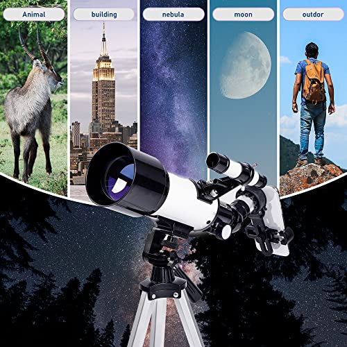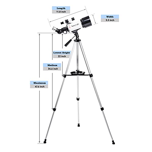 Telescopio Astronomico Bambini, Apertura 70 mm e Lunghezza Focale 400 mm, 16x-120x, Telescopio Astronomico Professionale con Supporto AZ, Compatto e Portatile, Facile da Montare e Utilizzare