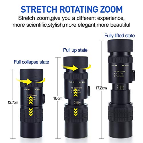 Telescopio Monoculare, 4k 10-300x40mm HD Monocular Telescope Professionale Potente Impermeabile Monoculare con adattatore cellulare e treppiede per bird watching, caccia, campeggio, viaggi