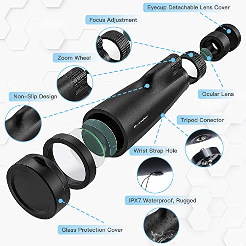 Telescopio Monoculare, 10-30X50 Zoom HD Monoculare, FMC BAK4 Prisma Telescopio Monoculare Ad Alta Potenza con Cinghia Portatile Adattatore Telefono per Bird Watching Caccia Campeggio (DT07)