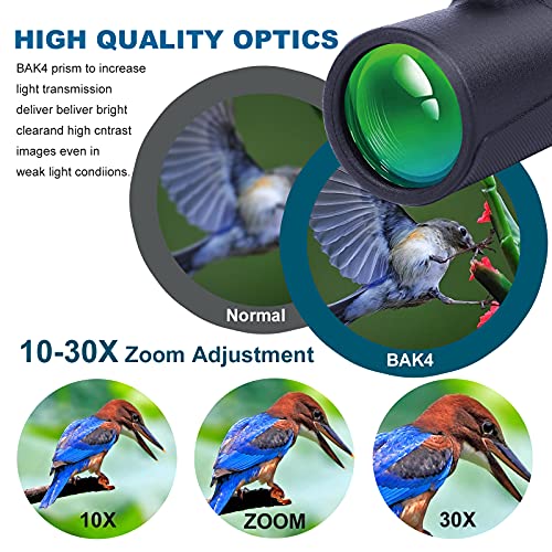 Telescopio Monoculare Zoom 10-30x42 Compatto, con Supporto per Smartphone, Lente Monoculare HD BAK4 con Prisma FMC Messa a Fuoco a Mano Singola,per Birdwatching, Campeggio, ecc