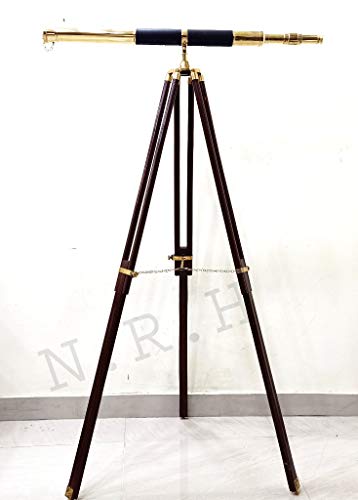 Telescopio da pavimento, stile nautico, vintage, in ottone e pelle, con treppiede