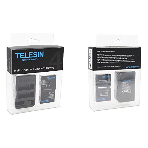 TELESIN 1200mah-Batteria di ricambio, 2 pezzi, 3 canali, Multi-function-Set di 2 caricabatterie ( Batteria telecomando ) Caricabatterie per Gopro Hero 4 fotocamera e videocamera Gopro Ahdbt-401, Ahbbp-401
