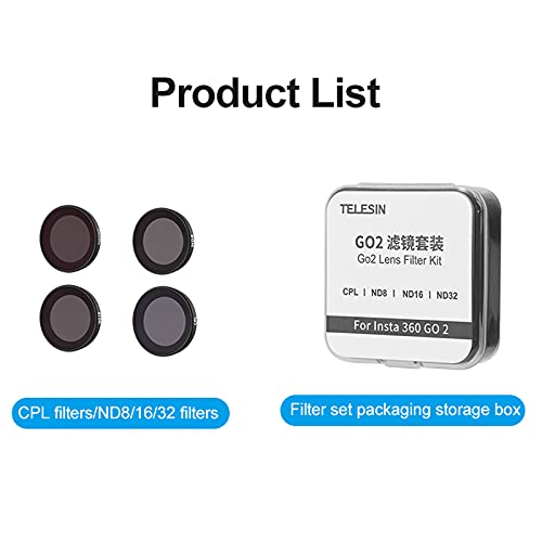TELESIN - Set di 4 filtri per obiettivo CPL ND8 ND16 ND32 per obiettivo della fotocamera Insta360 Go2 polarizzante a densità neutra kit di protezione dell'obiettivo compatibile con Insta360 accessori