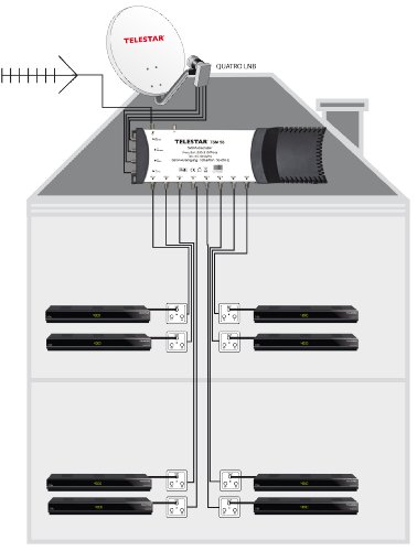 Telestar TSM 58 - Commutatore per antenna, fino a 8 utenti, con 4 entrate SAT + 1 entrata DVB-T e 8 uscite, alimentatore di rete integrato, 100-230 V