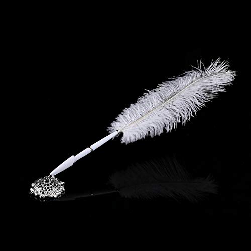 Telituny Penna D'Oca-2 Colori Piuma di Struzzo Penna a Sfera con Firma da Sposa con Penna a Sfera con Supporto in Metallo novità(Base Argento)