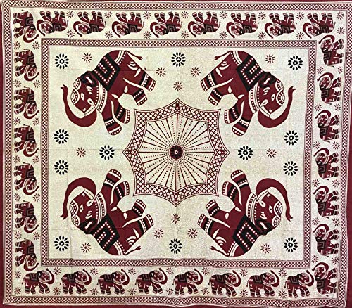 Telo Arredo Copritutto Grande Elefante Decorato Sabbiato 210x230 cm 100% Cotone Indiano (Bordeaux)