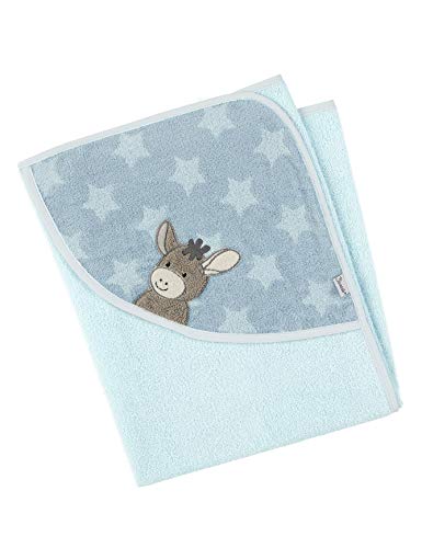 Contiene: 1x Sterntaler Telo da bagno con cappuccio Emmi L'Asinello, Età: Da 0 mesi, 80 x 80 cm, Celeste con stelle