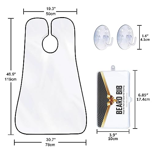 【Accessori per la cura della barba ragionevoli】Questo kit di alta qualità per la cura della barba viene fornito con un grembiule da barba in nylon di alta qualità, tre ventose con ganci adesivi, una brochure del prodotto e una bella confezione in scatola per una facile conservazione e trasporto.