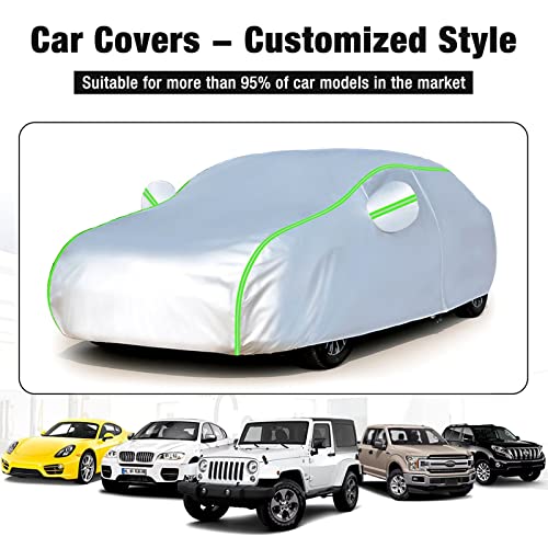 【Protezione per tutte le intemperie】Il copri auto per esterno protegge la tua vettura tutto l'anno da tutte le condizioni atmosferiche e dagli elementi durante tutto l'anno. Proteggi la tua auto dalla neve e dal gelo in inverno. Può rifrangere i raggi ultravioletti in estate, sole, pioggia, protezione dal vento e fermato escrementi di uccelli, polvere, foglie in primavera e in autunno, proteggere la vernice dell'auto.