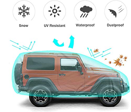 ✔ Universale, adatto a jeep Wrangler a 2 porte, con una dimensione di 430 (lunghezza) x 165 (profondità) x 165 cm (altezza). Questo copriauto impermeabile si adatta al meglio a jeep Wrangler a 2 porte e alle jeep Wrangler CJ, YJ, TJ e JK fino a 430 cm (L). -