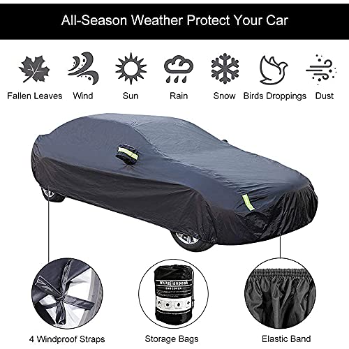 【Protezione per tutte le condizioni atmosferiche】 Le coperture complete per auto proteggono il tuo veicolo in tutte le stagioni da dannosi raggi UV, sporco, polvere, neve invernale, pioggia, escrementi di uccelli e altre condizioni meteorologiche estreme.
