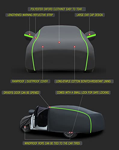 Copriauto di ottima qualità -- Telone per auto realizzato in tessuto oxford di poliestere a doppia cucitura e resistente all'acqua, non facile da rompere e deformare. Questa leggera copertura per automobile ha un design con cerniera della porta, orlo elastico per una vestibilità comoda, la posizione di 4 pneumatici ha una corda antivento, può rendere la tua auto più sicura nelle giornate ventose.
