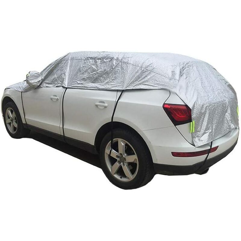 Questo manto nevoso per parabrezza per auto è perfetto per qualsiasi modello di camion, auto, SUV, furgoni e altro ancora.?:Realizzato in tessuto PEVA resistente all'acqua e ai raggi UV con foglio di alluminio, cotone micro. impermeabile, anti-sole e ignifugo.?: resistente ai raggi UV, pioggia, gelo, neve, polvere - può essere utilizzato come visiera parasole parasole in estate e paraneve in inverno, mantiene le foglie in autunno, blocca la polvere in primavera per rendere la tua auto in buone condizioni.,+ anti-incendio + anti-UV + anti-graffio + anti-vento + antifurto, universale per quattro stagioni?: È leggero, che facilita l'installazione e lo stoccaggio. Non sono necessari strumenti per l'installazione e ripiegalo in Neat Pouch.
