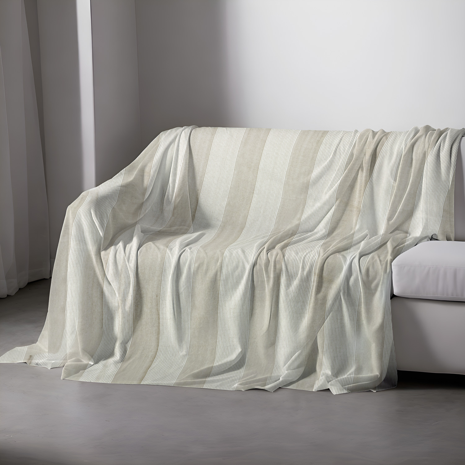 Completa il tuo arredo con il dettaglio di questo telo copritutto a righe: come usarlo lo decidi tu! Starà benissimo sul tuo divano per coprirne il rivestimento preservandolo da macchie e sfregamenti con le cerniere dei vestiti, ma anche in camera come elegante copriletto. All'occorrenza puoi usarlo anche come telo arredo dove ti è più funzionale. Il telo rappresenta il perfetto mix tra morbidezza e resistenza con la sua combinazione di fibra naturale e fibre sintetiche. In più si asciuga e stira molto rapidamente... da non sottovalutare! Grammatura: 180 gr/mq. Lavabile a 30°. Misura: 2 piazze, 260x250 cm.