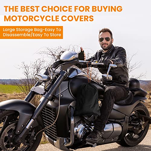 Telo Coprimoto da Esterno,Impermeabile,Telo Copri Moto in Tessuto Oxford 420D,con Finestra Trasparente per La Targa,4 Strisce Riflettenti,3 Fibbie Antivento,2 Fori Di Bloccaggio(XL 208 X 95X 125CM)