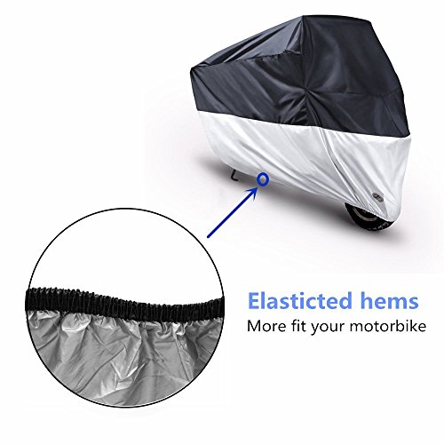 4XL Telo Coprimoto Impermeabile per moto, 190T Esterni Antipolvere Anti UV Traspirante per Honda, Yamaha, Suzuki, Harley e altro. Four Seasons Universale (Nero+Argento;