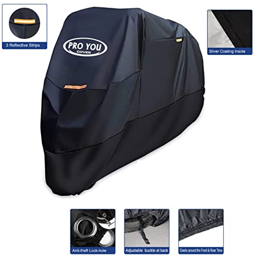 Materiale di alta qualità: la copertura per moto Pro You è realizzata in tessuto di poliestere di alta qualità. Tessuto Oxford spesso 420D, rivestimento interno argentato. Il materiale resistente e spesso riduce notevolmente i danni dei raggi ultravioletti;