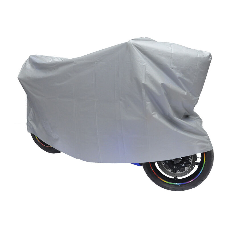 MATERIALE IMPERMEABILE DUREVOLE E CUCITURE DI PRECISIONE Realizzato in materiale PEVA di alta qualità con rivestimento in PU impermeabile per proteggere la tua moto, scooter o bici di grandi dimensioni da pioggia, neve, sole, polvere e detriti, cuciture a doppio ago crittografate, non facili da perdere, molto resistente Il telo coprimoto è universale e si adatta a tutti i tipi di moto L: 240x140 CM