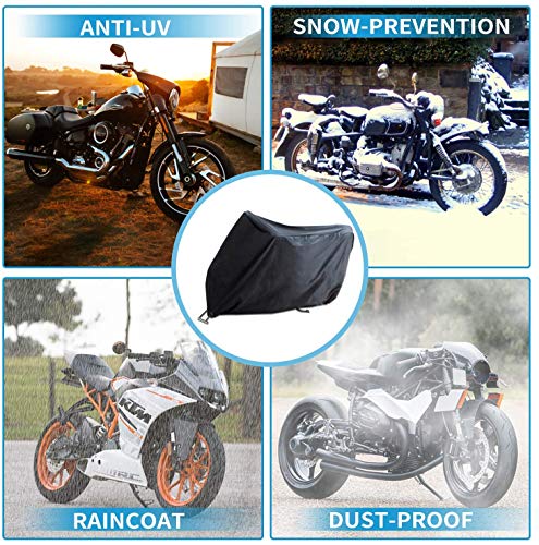 Telo Coprimoto, Telone Moto Impermeabile Invernale Impermeabile 210D Tessuto Oxford con Fori di Bloccaggio Telone Antipolvere Moto per Harley-Davidson, Honda, Suzuki (265 * 105 * 125 cm)