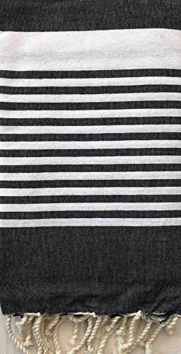 Telo Fouta Tunisino Multy Righe 100% Cotone con Frange Telo Sauna Hammam (Nero)