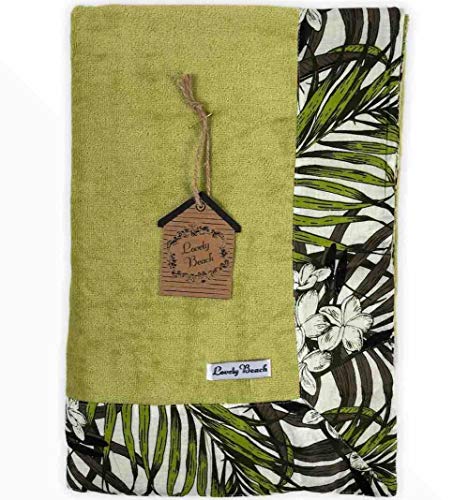 Telo Mare Okoa Fashion Bordo Stampato 90x170cm Telo Spugna 100% Cotone Telo Spiaggia Beach Towel (Verde Chiaro)