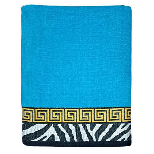 Telo Mare Tinta Unita Safari Zebrato 100% Spugna di Cotone Asciugamano 90x160cm Beach Towel (Turchese)