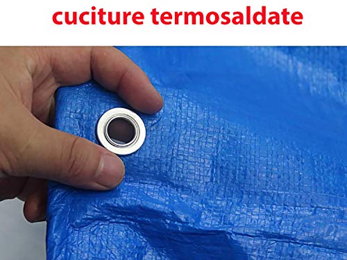Telo Occhiellato Pesante Metri 3 x 5 Impermeabile Blu-Grigio Gr 200 per Metro Quadrato Resistente alle Muffe Angoli Rinforzati Cuciture Elettrosaldate Passacavi Antiruggine Guanti NBR in Omaggio