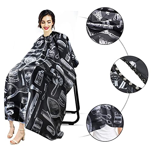 【Tessuto resistente】: il mantello da barbiere stampato nero è realizzato in taffetà di poliestere leggero, resistente alle macchie, impermeabile, antirughe, antistatico, morbido e liscio. Puoi mantenere i tuoi vestiti puliti e asciutti.