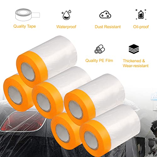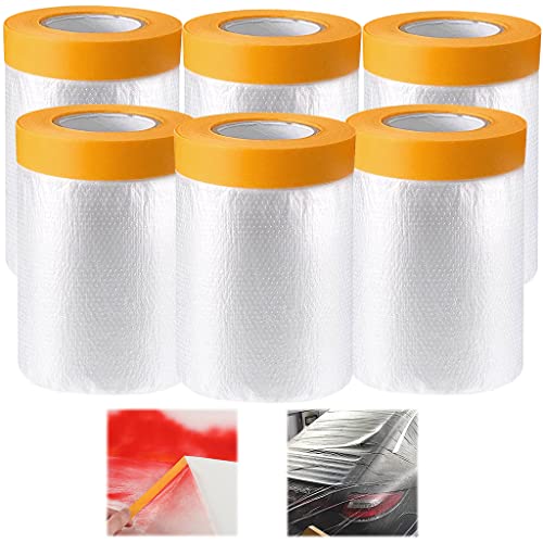 6 Pz Telo per Pittura Imbianchino Copritutto Plastica, Telo Copritutto in Rotolo Bordo con Nastro Adesivo, Telo Protettivo per Pittura, Film per Mascheratura con Nastro Adesivo 55CM*20M (55cm×20m)