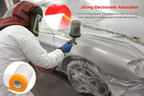 Funzione autoadesiva: Leggero e resistente agli strappi con adesione statica integrata. Quando il telo di plastica è coperto, può essere fissato liberamente alla superficie di oggetti come la carrozzeria dell'auto, per garantire una protezione completa.