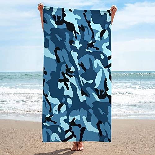 Telo Da Spiaggia Camuffare Telo Mare Microfibra 160x80 cm Telo da Mare Asciugatura Rapida Leggero e Portatile, Asciugamano da Spiaggia Blu per viaggio, Campeggio e Bagno