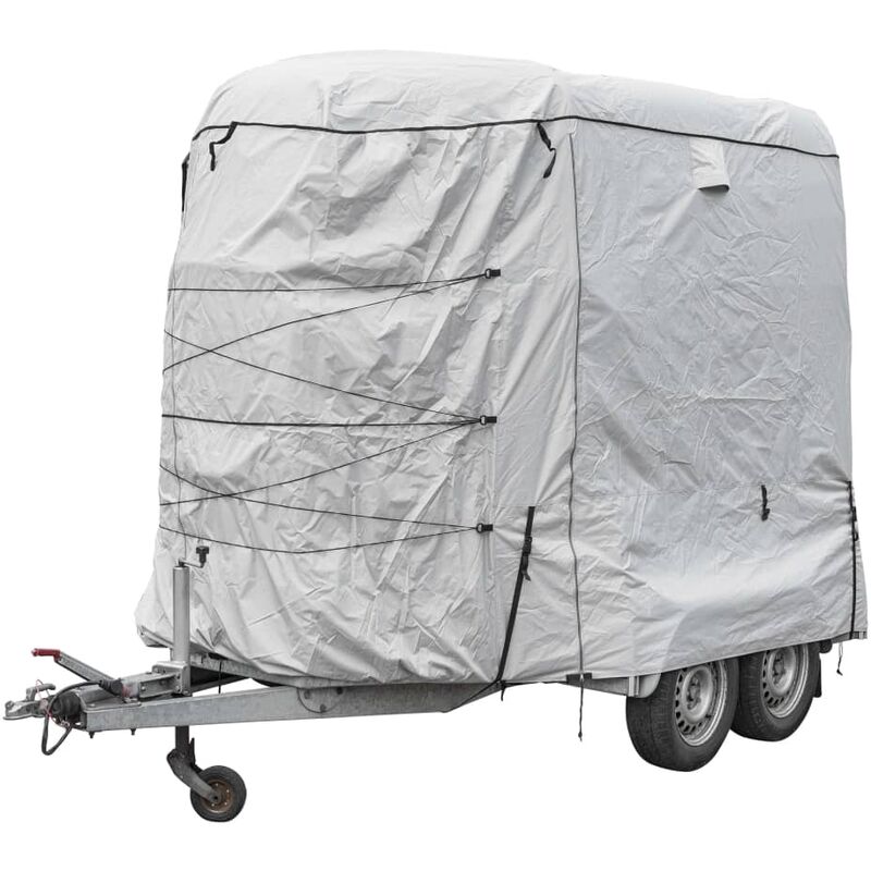 Questo telone di copertura universale della ProPlus è ideale per la protezione del rimorchio per cavalli. Realizzata in poliestere di alta qualità, questo telone è estremamente resistente. Le aperture di ventilazione inoltre, assicurano la circolazione dell'aria all'interno del telo di copertura, rendendolo traspirante. Colore: Grigio Materiale: 100% poliestere Oxford 300D Dimensioni: 370 x 190-250 x 210 cm (L x P x A) Impermeabile Traspirante grazie alle aperture di ventilazione Materiale: Poliestere: 100% SKU: 424692