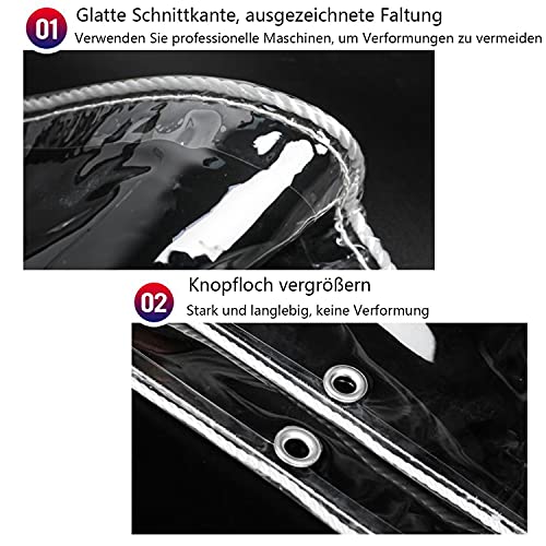 Telone Occhiellato Impermeabile: la nostra tela impermeabile trasparente è realizzata in materiale pvc di alta qualità, resistente agli strappi, impermeabile, 0,4 mm, buona trasparenza, resistenza al freddo, tela ripetibile e per uso a lungo termine, adatta a condizioni meteorologiche e condizioni di lavoro estreme, fornendo la migliore Buona protezione UV, riutilizzabile, facile da pulire, 450 g/m2