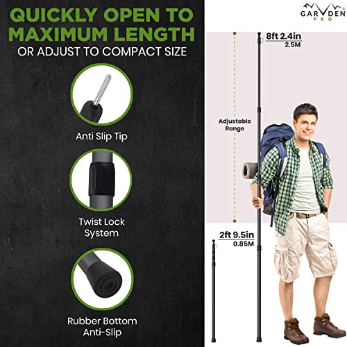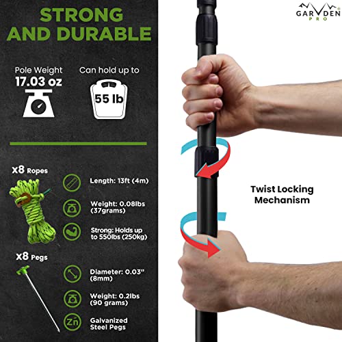 Forte e leggero: Garden V PRO presenta il compagno di campeggio perfetto. I nostri pali sono realizzati in acciaio di alluminio e sono resistenti e durevoli, possono contenere fino a 36,3 kg ciascuno mentre pesa solo 17 once! Così leggero, non lo sentirai durante il trekking. Hai una tenda? Tendali? Rainfly? Ti abbiamo coperto per qualsiasi missione in campeggio che cerchi.