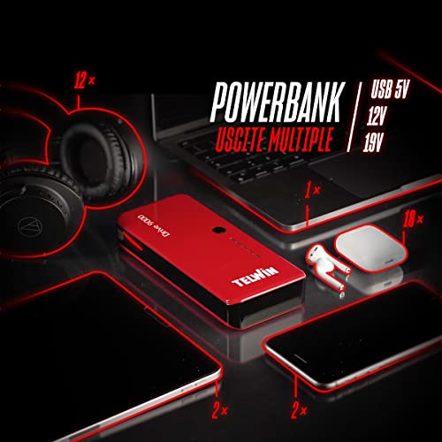 Telwin Drive 9000 Avviatore Compatto al Litio 12V & Power Bank, Rosso, 1200A