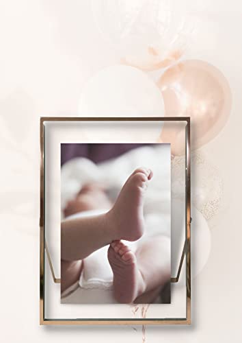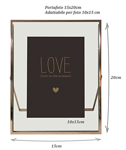 TemaDecor - Portafoto Moderno- Portafoto da Tavolo Doppio Vetro - Cornice in Metallo Oro Rosa - Effetto Foto Galleggiante (10x15) - (15x20)