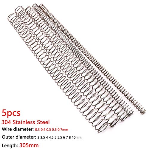 Temhyu Shuxiang-Primavera 5 Pezzi, Primavera a Compressione da 305 mm, Fili a Molla a Pressione in Acciaio Dia 0.3 0.4 0.5 0.6 0.7mm Diastatore Esterno 3 4 4.5 5 5.5 6-10mm Alta qualità