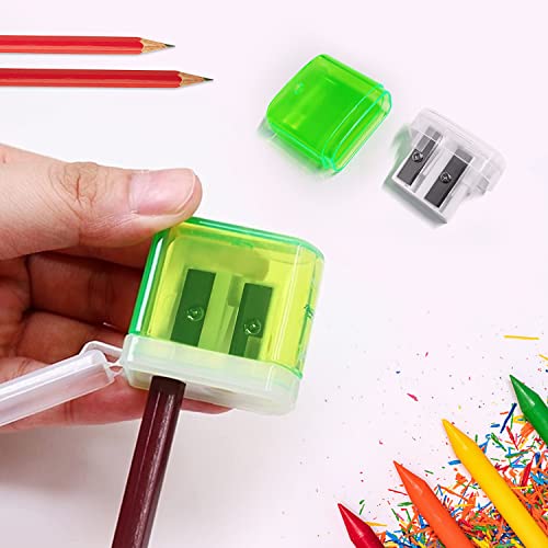 8 temperamatite a doppio foro e 4 gomme, temperamatite manuale con coperchio, temperamatite portatile a doppio foro con contenitore per bambini, adulti, studenti, scuola, casa, ufficio, forniture