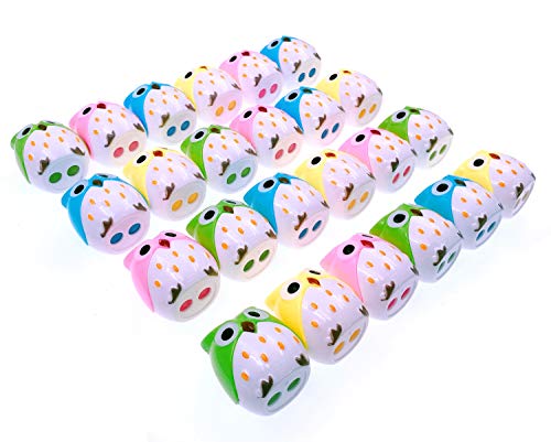 Lista del pacchetto: 24 x temperamatite due fori a forma di gufo. Puoi smontare la pancia e la testa per versare i trucioli dalla pancia. Dimensioni: 4.3 x 3.9 x 4.5 cm. Colori: giallo, blu, verde e rosa.