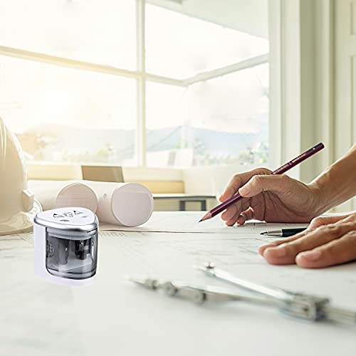 Temperamatite elettrico a batteria a doppio foro per affilatura rapida per matite con 6-8 mm e 9-12 mm di diametro, funzionamento a batteria in ufficio (grigio, 1 pezzo)