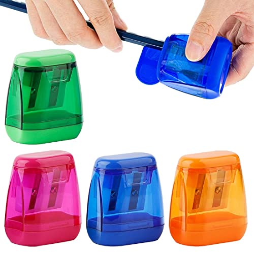 Temperamatite 4 pezzi, temperamatite manuale portatile, temperamatite colorato compatto a due fori con coperchio per bambini, adulti, studenti, scuola, casa, ufficio