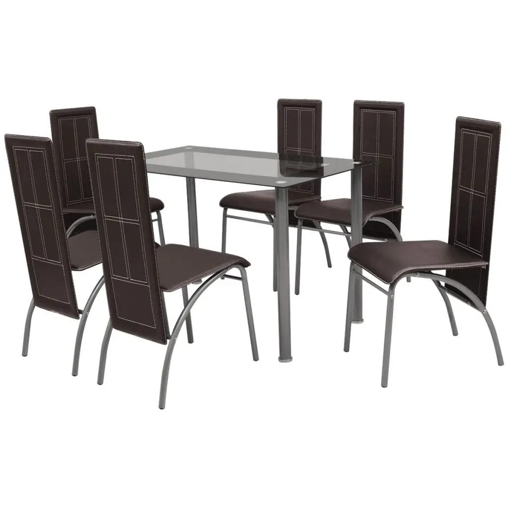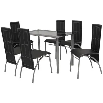 Tempered Glass Dinette Combination Modern Rectangular Home Dining Table Nordic Style Dinner Together 7Pieces Black Modern